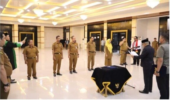 Bupati Kotabaru, H. Muhammad Rusli resmi melantik dan mengambil sumpah janji jabatan bagi sejumlah pejabat administrator, pengawas, hingga fungsional kesehatan.