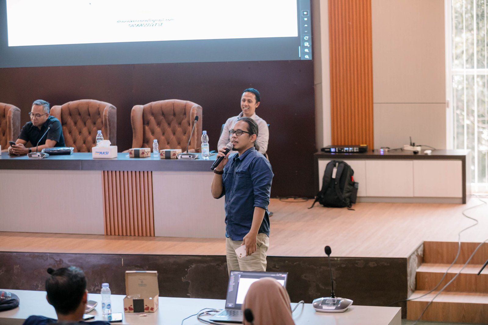 Kepala Diskominfo SP Tanah Bumbu, Al Husain Mardani, memberikan apresiasi terhadap dua narasumber yang punya kompetensi untuk memberikan wawasan baru kepada para peserta.