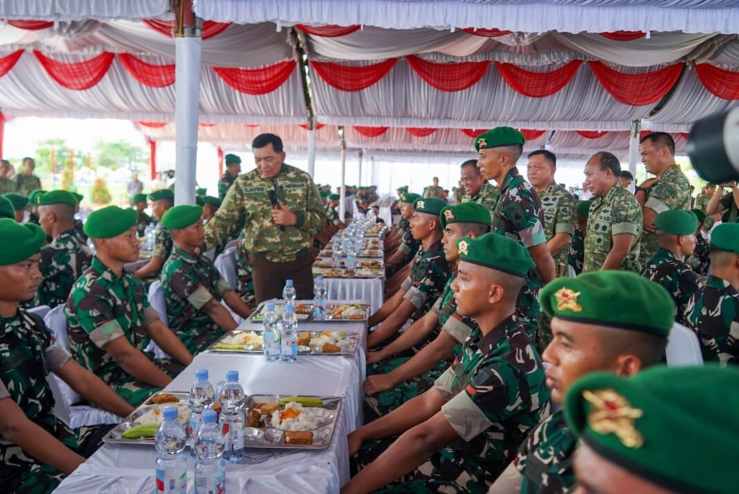 Kegiatan dilanjutkan makan siang bersama, Mentan dan tamu undangan menikmati makan dengan ompreng bersama ratusan prajurit dengan menu sederhana.