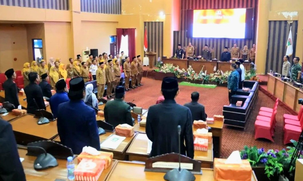 Rapat dipimpin Wakil Ketua II DPRD Tanah Bumbu, Sya’bani Rasul, didampingi Wakil Ketua I, Hasanuddin, yang dihadiri Asisten Pemerintahan dan Kesra, M. Putu Wisnu Wardhana, mewakili Bupati Andi Rudi Latif di Ruang Sidang Utama, Selasa (7/10/2025).