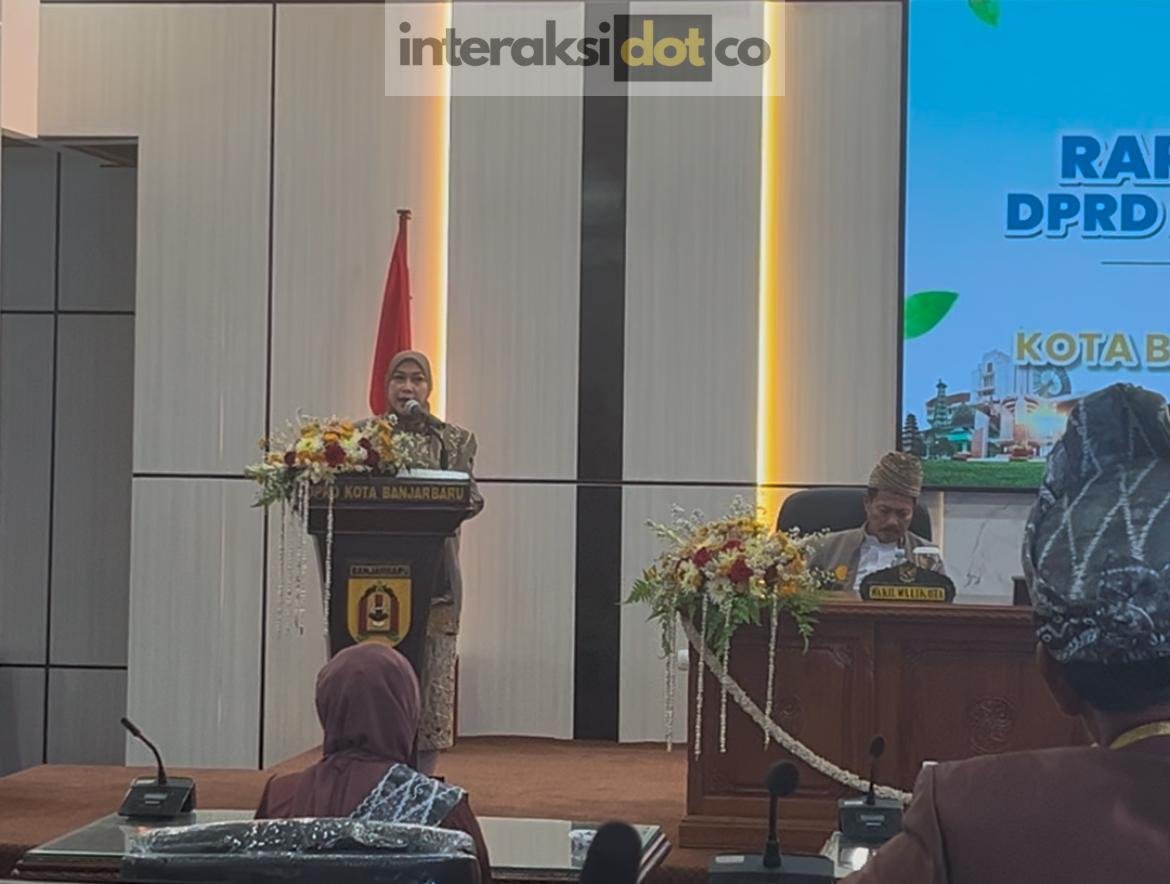 INTERAKSI.CO, Banjarbaru – Wali Kota Banjarbaru, Hj Erna Lisa Halaby memaparkan berbagai capaian pembangunan dalam Rapat Paripurna Hari Jadi ke-27 Kota Banjarbaru di Gedung DPRD Banjarbaru, Minggu (19/4/2026) sore.