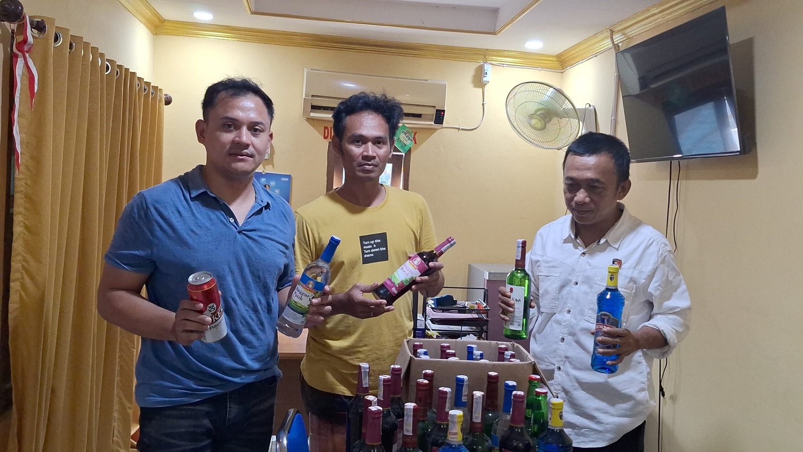Sebanyak 33 botol dan kaleng miras diamankan sebagai barang bukti. Rinciannya, antara lain 15 botol Anggur Merah, 7 botol Anggur Putih, 6 botol Kawa-Kawa, 1 botol Alexis, 2 botol Bintang, dan 3 kaleng Anker.