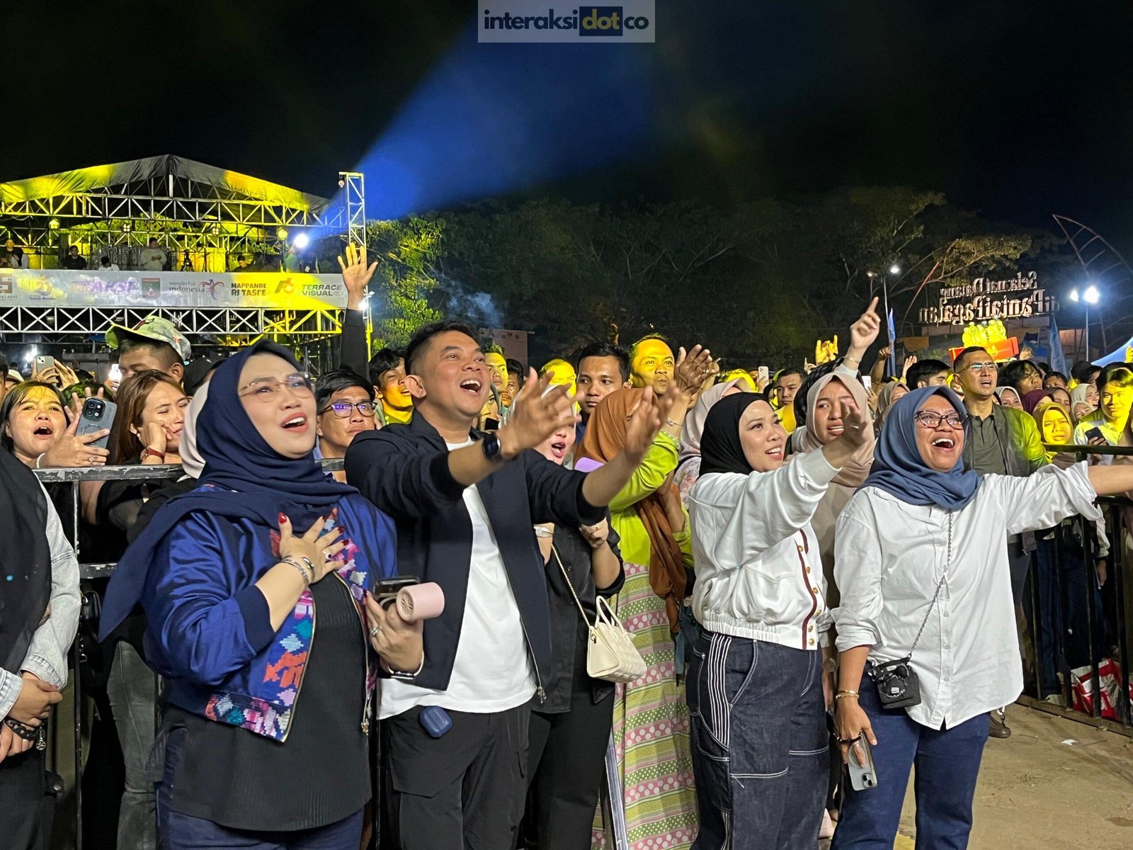 Sementara persis di depan panggung, Andi Irmayani, istri Bupati Tanah Bumbu, ikut bernyanyi bersama Hj. Noor Andi Arina Wati Arsyad, tokoh muda Tanah Bumbu yang berkontribusi besar dalam suksesnya berbagai event di Hari Jadi Tanah Bumbu. Keduanya tampak sangat menghayati setiap lirik yang dinyanyikan Bang Arul bersama Ady.