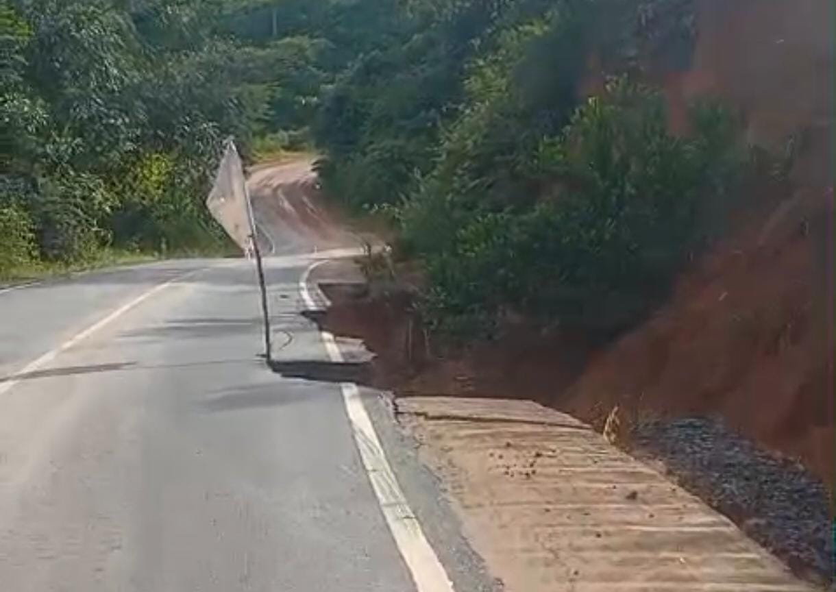 Sebuah video yang beredar di media sosial memperlihatkan kondisi tersebut. Tampak jelas aspal di tepi jalan telah ambruk, membentuk jurang yang cukup dalam.