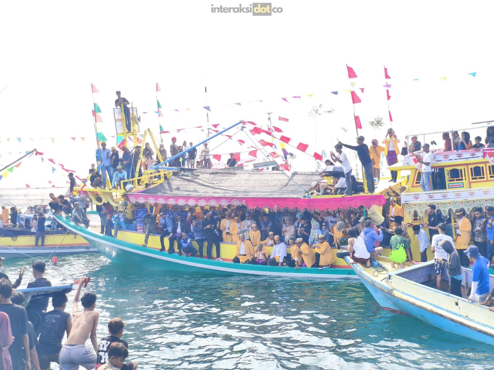 Di sana, puluhan kapal nelayan hias berbagai ukuran telah bersiap membawa rombongan menuju titik pelarungan di tengah laut. Setibanya di lokasi, prosesi inti dimulai di bawah panduan Sandro.