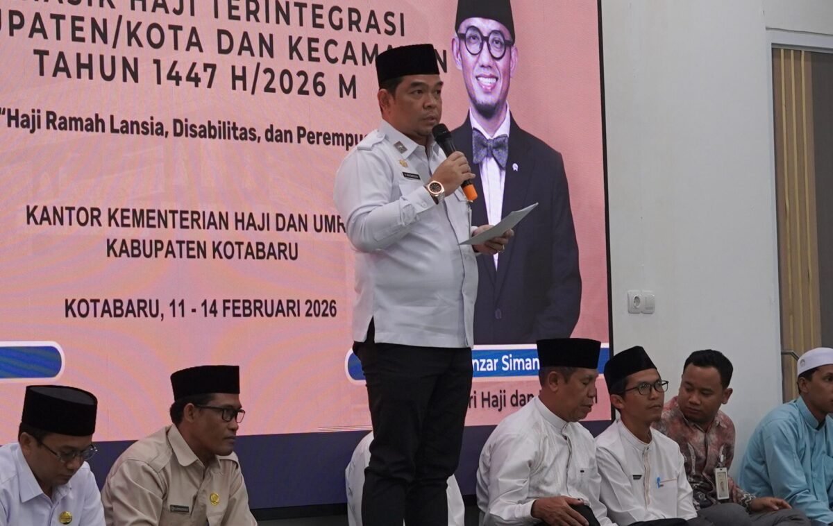 INTERAKSI.CO, Kotabaru – Pemerintah Kabupaten Kotabaru secara resmi membuka kegiatan Bimbingan Manasik Haji Terintegrasi tingkat kabupaten dan kecamatan bagi Jemaah Haji Reguler Tahun 1447 Hijriah/2026 Masehi, Rabu (11/2/2026) pagi.