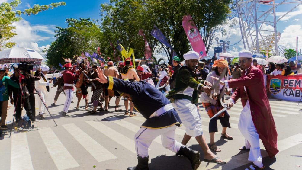 Peserta mengenakan kostum pasukan Belanda abad ke-19 hingga pejuang dari berbagai daerah, seperti Kerajaan Banjar, Bugis, Dayak, Maluku, dan Aceh, yang bersatu di satu panggung.