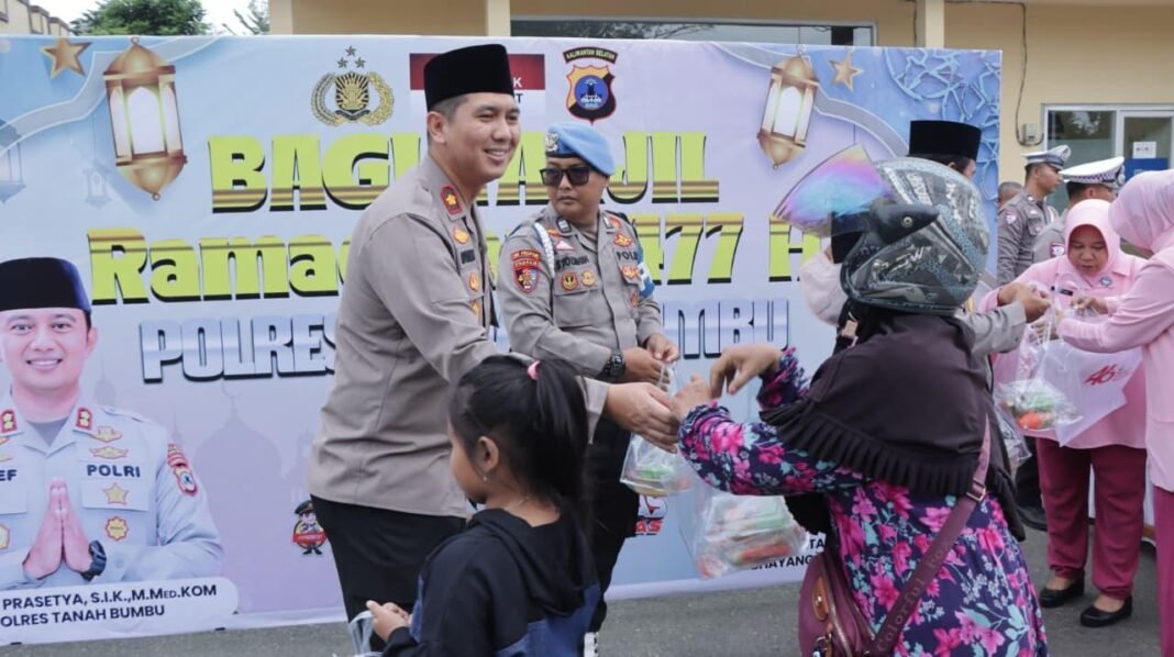 “Pembagian takjil ini merupakan bentuk kepedulian Polres Tanah Bumbu kepada masyarakat, sekaligus menjadi sarana untuk mempererat hubungan silaturahmi antara Polres Tanah Bumbu dan masyarakat,” kata Kapolres Tanah Bumbu AKBP Arief Prasetya.