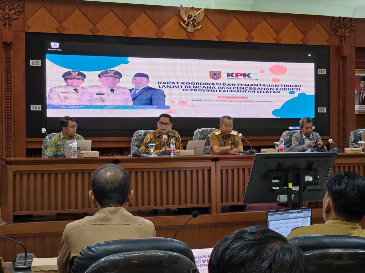 Hal itu dia sampaikan dalam Rapat Koordinasi dan Pemantauan Tindak Lanjut Rencana Aksi Pencegahan Korupsi di Provinsi Kalimantan Selatan yang berlangsung di Ruang Rapat H. Maksid, lantai 3, Kantor Gubernur, Selasa (9/9/2025) pagi.