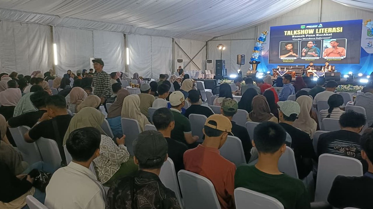 Ratusan peserta dari komunitas pegiat literasi, pelajar, hingga jajaran Forkopimda memadati area untuk menghadiri Talkshow Literasi bertajuk “Cerdas Membaca Informasi”.