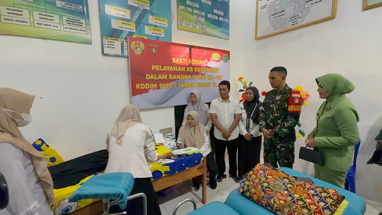 INTERAKSI.CO, Batulicin – Dalam rangka kegiatan TNI Manunggal Membangun Desa (TMMD) ke-126, Kodim 1022/Tanah Bumbu menggelar pasar murah, pembagian sembako gratis, serta layanan Keluarga Berencana (KB) gratis di Kantor Desa Rejosari, Kecamatan Mantewe, Rabu (8/10/2025).