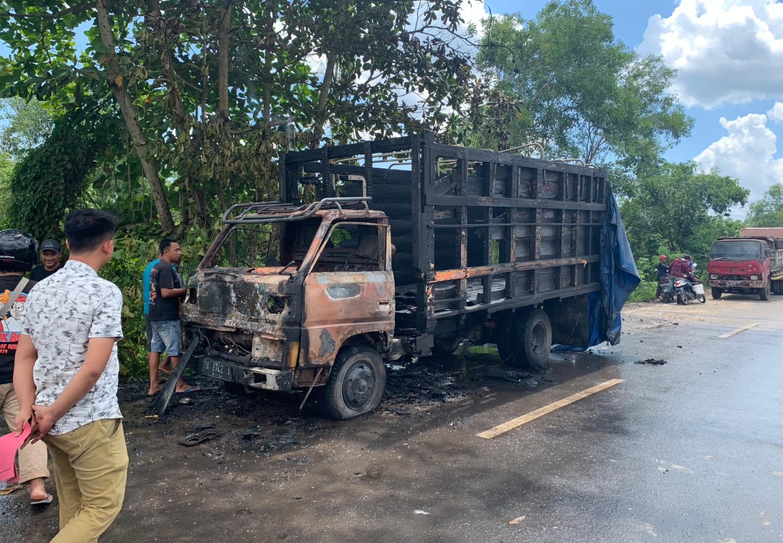 “Berdasarkan keterangan saksi, api pertama kali muncul dari kabin truk sebelum membesar dan membakar seluruh bagian kendaraan,” ujar Kapolsek Liang Anggang, Kompol Imam Suryana.